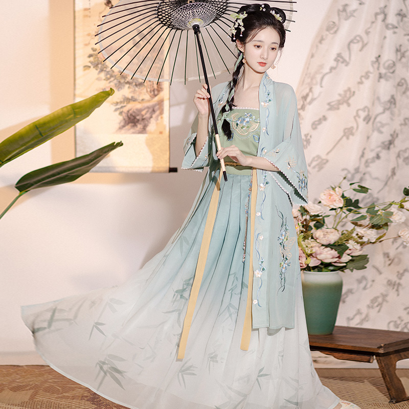 - 答:1. 汉服 齐胸襦裙:这种款式是汉服中的经典之一,通常由两件组成:一件是上身的短襦,另一件是下身的长裙。裙子高腰设计,能够拉长腿部线条,显得人更加高挑。齐胸襦裙的面料选择多样,常见的有棉麻、丝绸等,适合不同季节穿着。对襟衫:对襟衫是一种开襟设计的上衣,左右对称,纽扣从领口一直延伸到衣襟底部。这种设计不仅方便